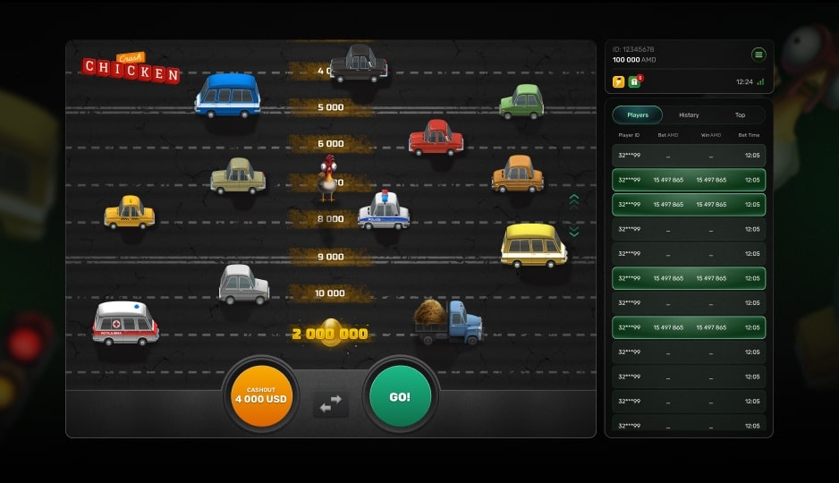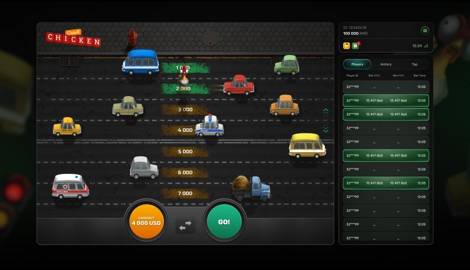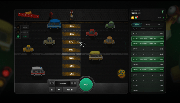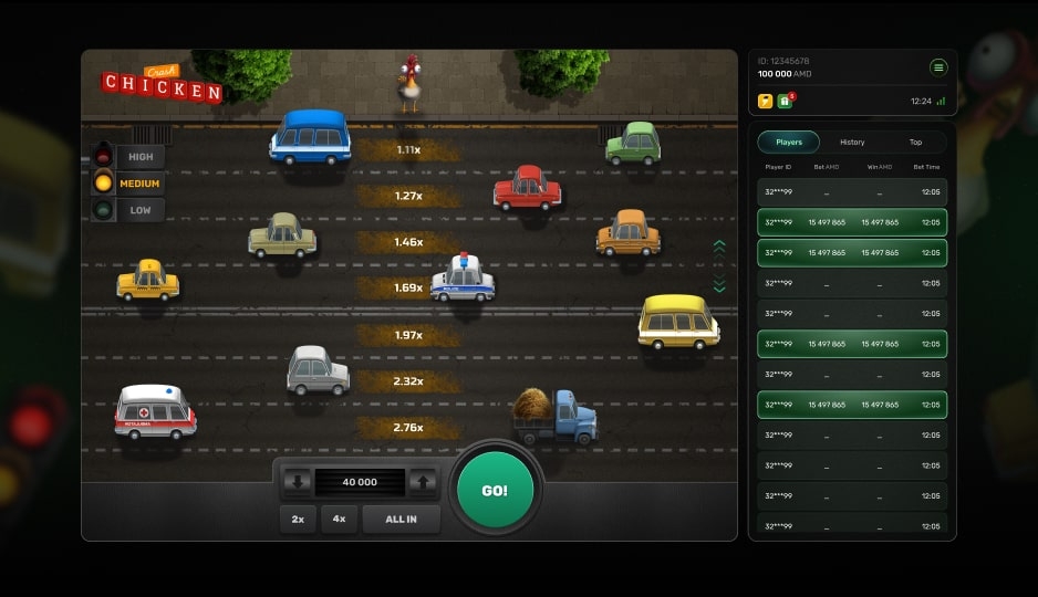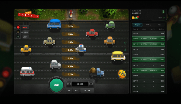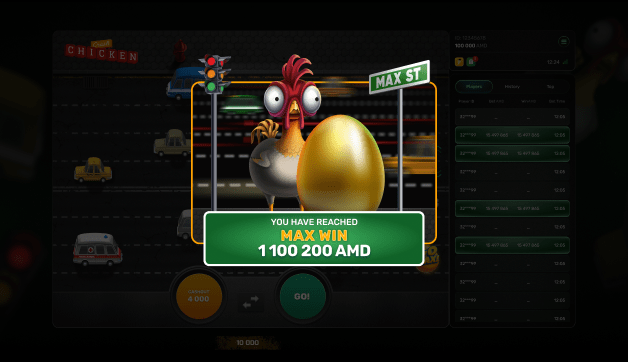 Chicken Crash is a high-energy crash-style game where players guide a fearless chicken across a chaotic city street, risking it all for skyrocketing multipliers and massive wins.