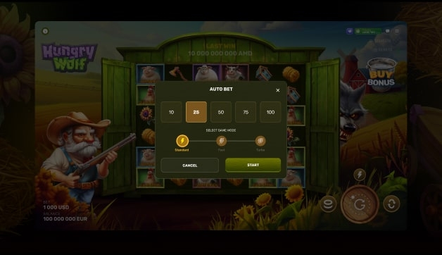 Players can instantly buy access to the bonus round, diving straight into free spins and wolf hunts without waiting.